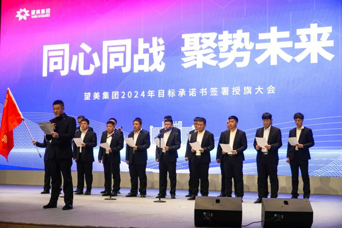 為有效促進各業(yè)務領(lǐng)域任務目標完成,推動集團穩(wěn)健向好發(fā)展。1月23日上午,望美集團在文體中心大會堂舉行目標承諾書簽署授旗大會,這個儀式象征著勇氣、責任與奮斗,也代表著望美對未來的信心和承諾。