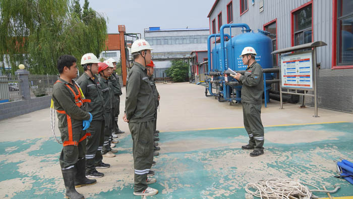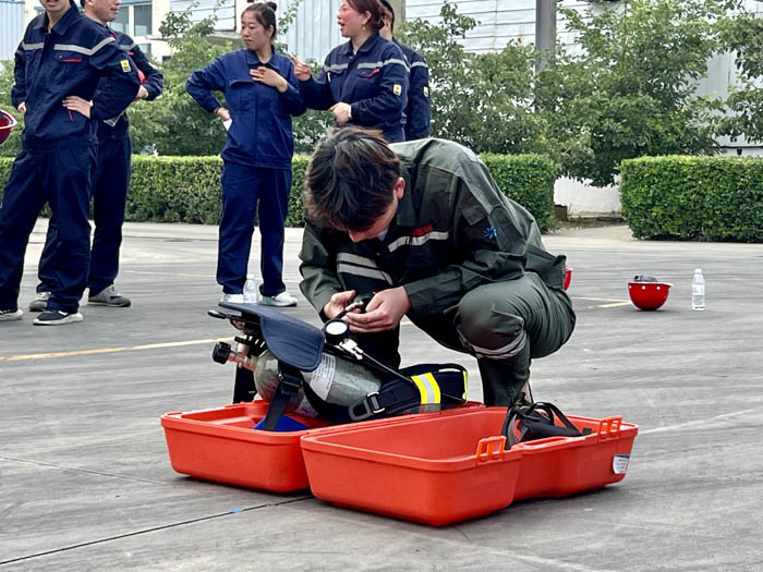 6月20日,天津公司在氮氫站舉行正壓式空氣呼吸器佩戴競賽活動。