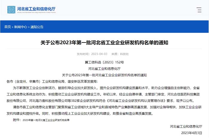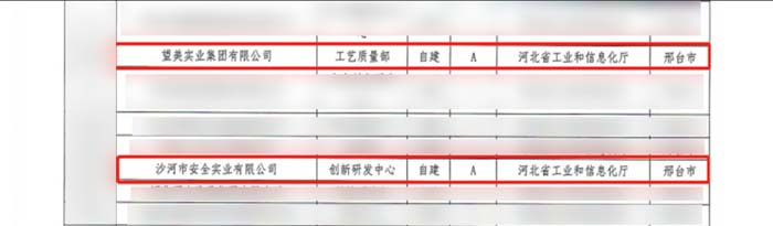近日,河北省工業和信息化廳發布“關于2023年第一批河北省工業企業研發機構名單的公示”。其中,望美集團旗下的沙河安全公司及望美公司榜上有名。