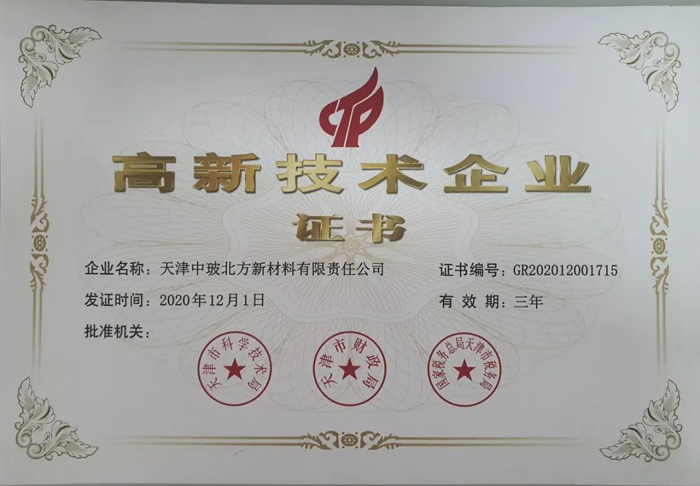 最終天津中玻北方新材料有限責(zé)任公司于2021年1月成功取得了高新企業(yè)資質(zhì)。