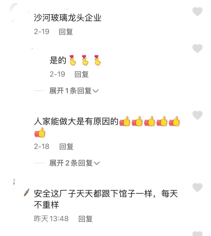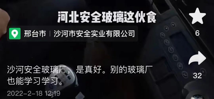 “沙河安全玻璃廠,是真好,別的玻璃廠也能學習學習。”這句話來自來公司送貨的一位客戶發的抖音原話。 抖音下方評論區也紛紛表示:“在沙河,安全是數一數二的”、“以客戶為中心”、“沙河玻璃龍頭企業”、“安全就是牛”等等。 不瞞你們說,小編不是第一次聽到客戶對公司的贊美,但每次聽到心里都會為自己待在這樣的企業感到驕傲!擇日不如撞日,讓我們也一起來聽聽其他客戶都是怎么說的? 客戶1 保安服務態度挺好,有不清楚的就會問保安,保安都會幫助,保安不清楚時會聯系倉儲,最后都會幫著把問題解決。 客戶2 過來裝過幾次車,望美這邊飯菜挺好的,裝卸車效率挺高,跟咱內部溝通這一塊也都挺愉快,好溝通,整體來說都挺好的。 客戶3 年前來咱公司裝設備,才知道望美,之前沒有了解過,也沒有在宿舍住過,后來是深加工領導領著辦理住宿的!通過這段時間接觸,食堂的飯菜沒的說,比我們之前去過的公司好得多,工作上,領導們都好溝通,沒有刁難不給辦事的! 客戶4 公司秩序挺好,進廠子都是按照秩序進,對人也都很溫暖。 還有很多,小編就不一一舉例了。客戶的贊揚是望美不斷鞭策自己的原動力!2022年望美會繼續以客戶為中心,不斷努力, 再創佳績!