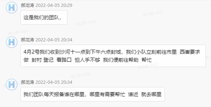 生產七線郝龍濤和他的伙伴們,自發成立義務救援隊,無條件去幫忙需要的人。如之前參加學校開學前的消毒等。