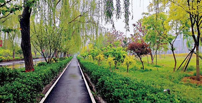 集團1300畝的廠區內,沒有灰塵彌漫。2018年,集團累計投入5000萬元,修建道路、綠化廠區,打造綠色環?;▓@式工廠。以廠區干道為主線,堅持點、線、面、環相結合的平面綠化,同時還大力發展立體綠化和墻面綠化,通過喬木、灌木、草甸的合理搭配,打造“生產化+生態化”道路、綠化景觀等。