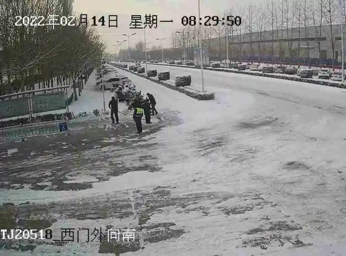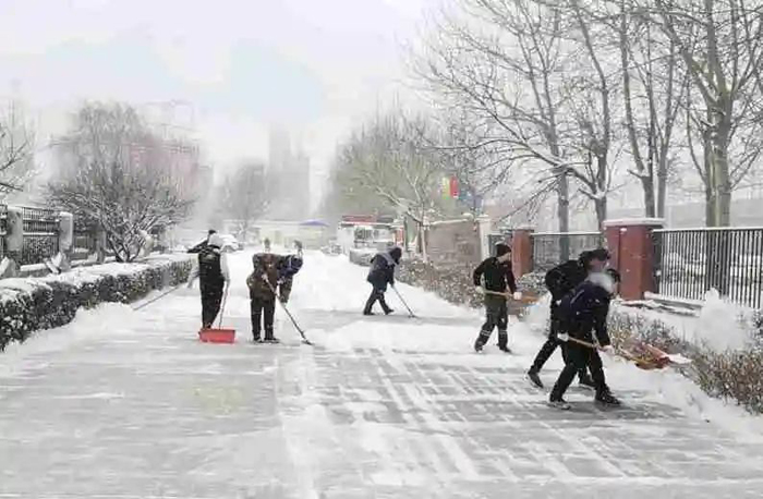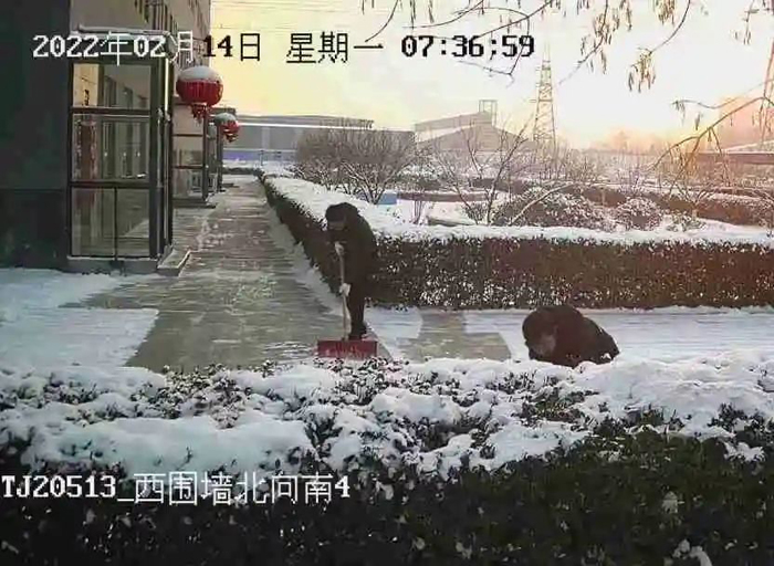 2月13日上午九時,薊州區(qū)開始普降大雪,大雪紛紛揚揚,越下越大。天津公司內(nèi)部道路逐漸出現(xiàn)積雪,2月14日,積雪厚達(dá)15cm,此時此刻盡快鏟除冰雪成為了大家共同的目標(biāo)。為了這一目標(biāo),來自不同崗位的他們不畏嚴(yán)寒、不懼濕滑,開始了冰雪大作戰(zhàn)。