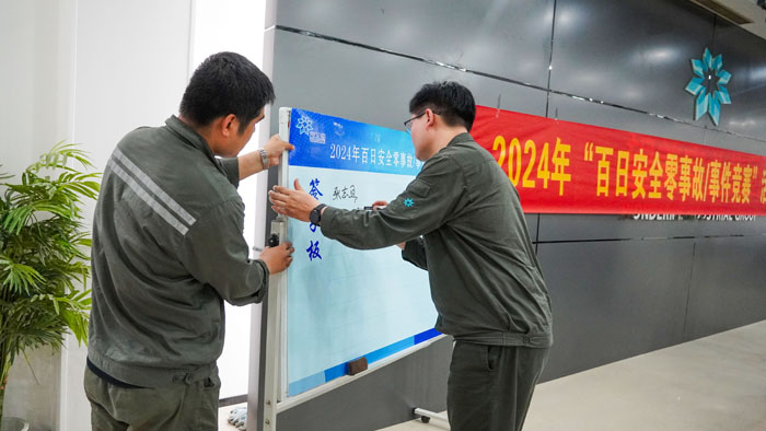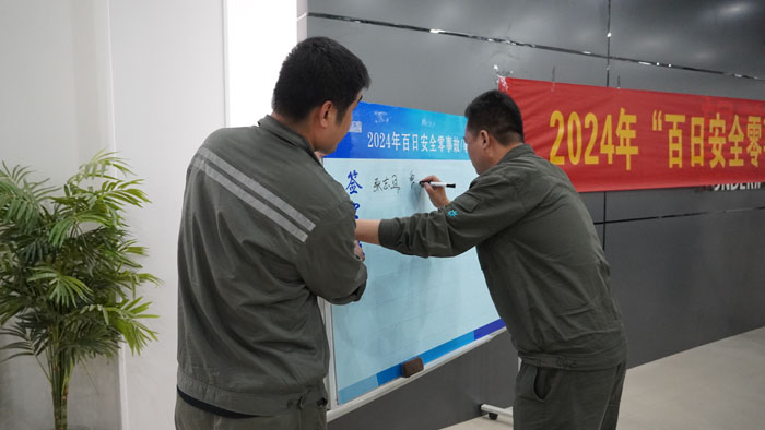 啟動儀式上,由浮法常務副總帶領參會管理者代表在“2024年百日安全零事故/事件競賽活動”看板上簽字。