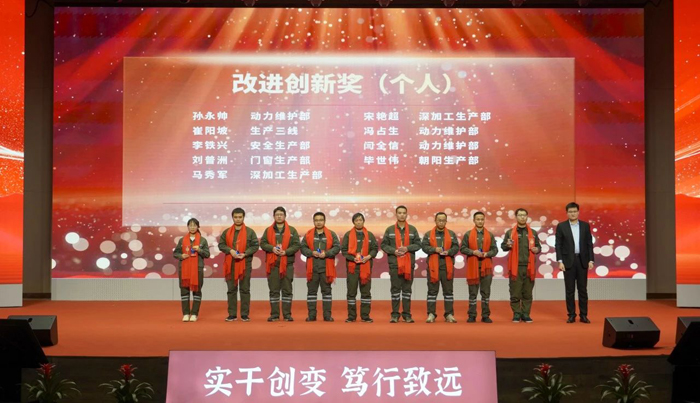 歲序常易,華章日新。1月12日,望美集團在文體中心報告廳組織召開“實干創變 篤行致遠”工作報告會議暨表彰大會。集團總裁姚衡、浮法常務副總、天津執行總經理、朝陽執行總經理、深加工常務副總、門窗常務副總等高層領導出席會議,各部門負責人、優秀團隊/個人獲獎代表近300余人參加了本次大會。