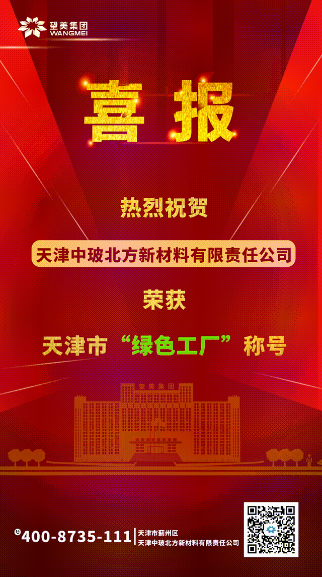 日前,天津市工業和信息化局公布了2023年度天津市綠色制造名單,望美集團旗下分公司天津中玻北方新材料有限責任公司入選天津市“綠色工廠”。
