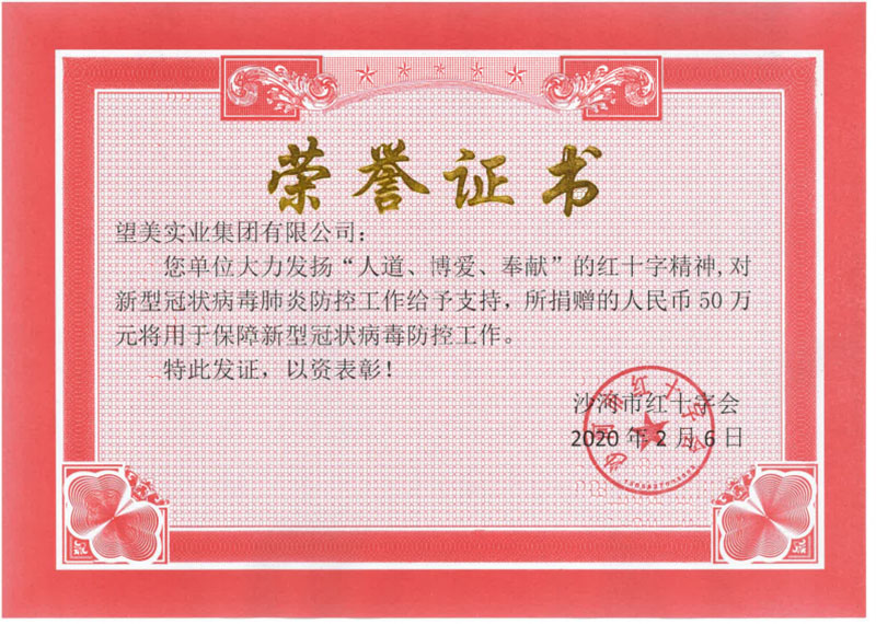 2020年向紅十字捐贈50萬元人民幣保障新型冠狀病毒防控工作